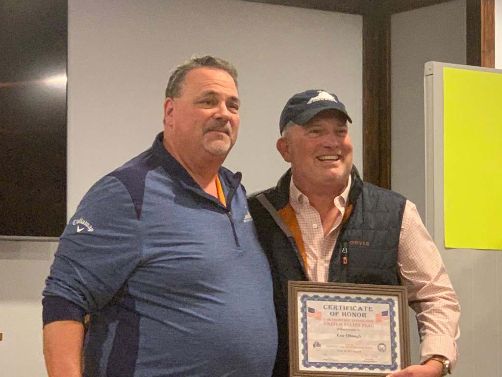 Certificate of Honor to Eric Obaugh for his commitment to fly the largest American Flags in Staunton. The largest one can be seen by thousands of people a day driving on Interstate 81. It measures 30’x60′ and flies at 150′ feet above the ground. Thanks Eric for your patriotism.