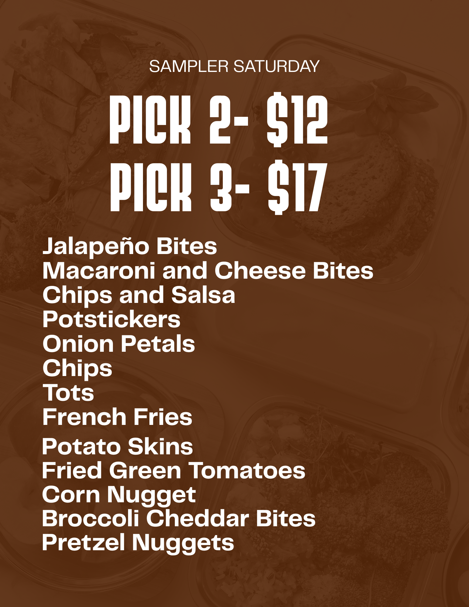 Sampler Saturday Menu Starts April 11, 2026 April 6, 2026Add a comment Share this: Share on X (Opens in new window) X Share on Facebook (Opens in new window) Facebook Like Loading... Related