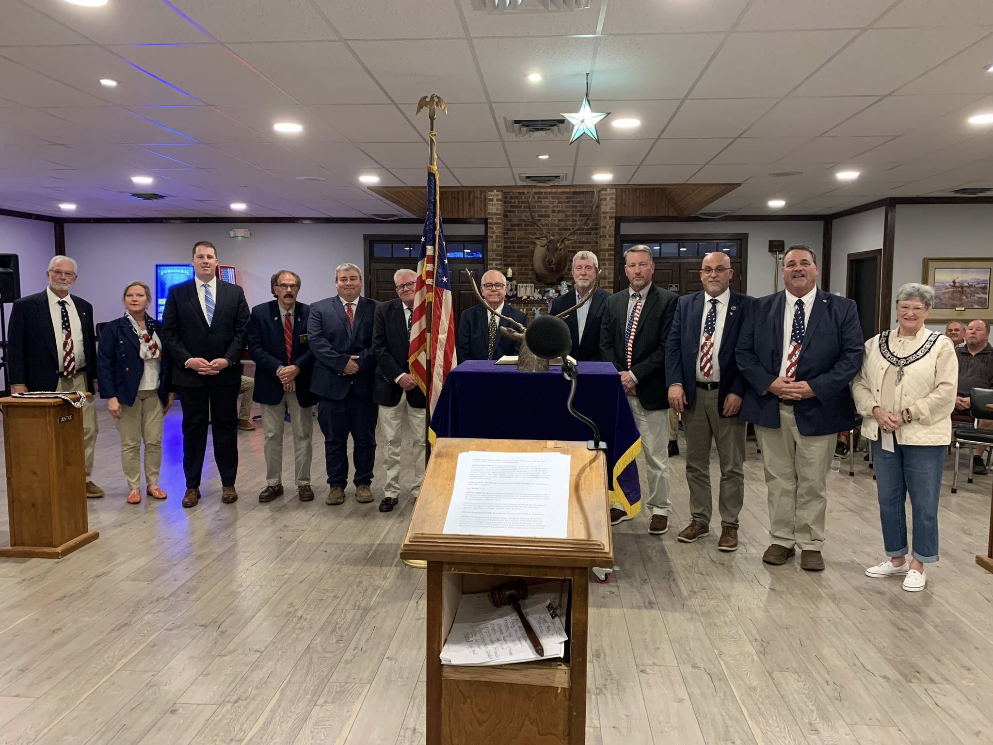 VEA President Lynn Rutherford Snow conducted the Installation of Officers for the 2026-2027 Elk Year: Exalted Ruler/Rader Dod, Leading Knight/Donnie Eckert, Loyal Knight/Bart Gibson, Lecturing Knight/Greg Allen, Secretary/ Chuck Archer, Treasurer/Justin Reiter, Trustee/ Cliff Edwards, Tiler/Joe Mader, Inner Guard/Cal Hurlebaus, Chaplain/Vonda Lacey, and Esquire/Jeff Wagner